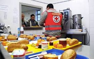 La Croix-Rouge distribue gratuitement des repas à ceux qui en ont besoin.